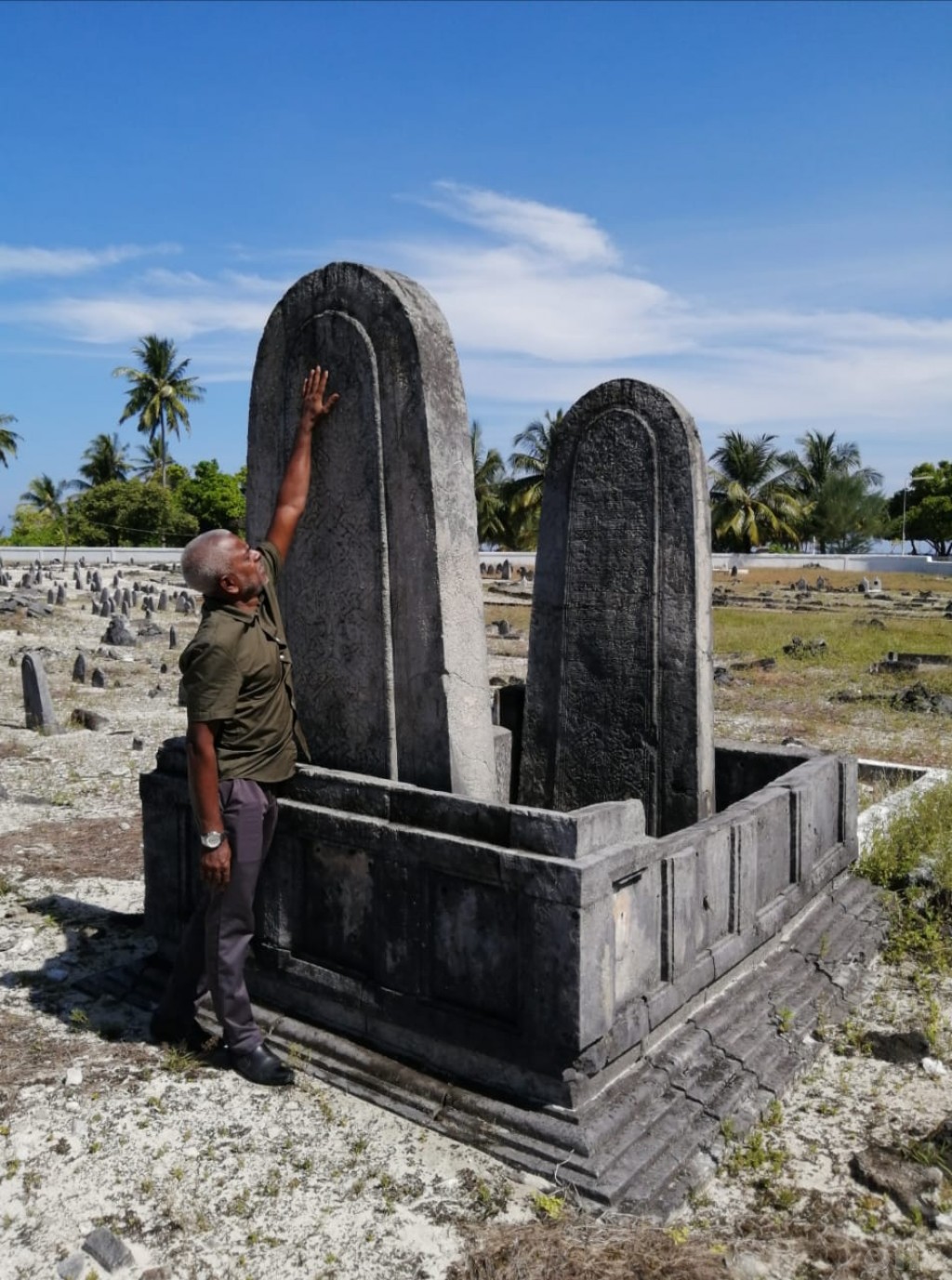 old Maldivian tombstones that were hand-carved on huge chunks of coral.